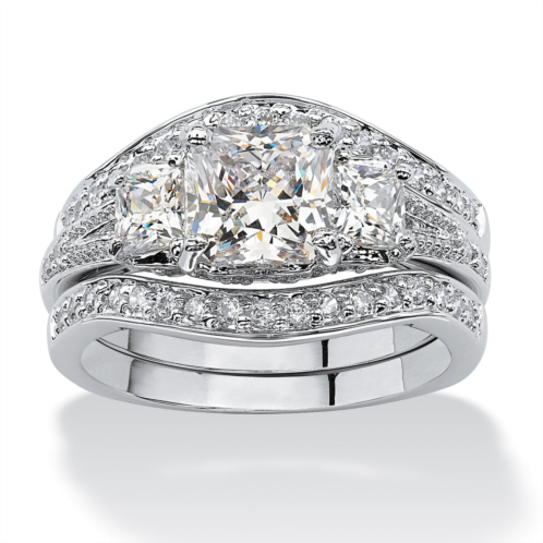 [US] PalmBeach Jewelry 2.89 tcw princess-cut cubic zirconia platinum-plated wedding band set