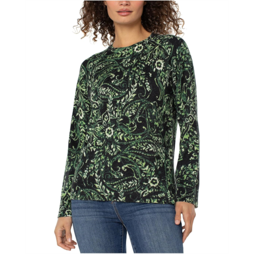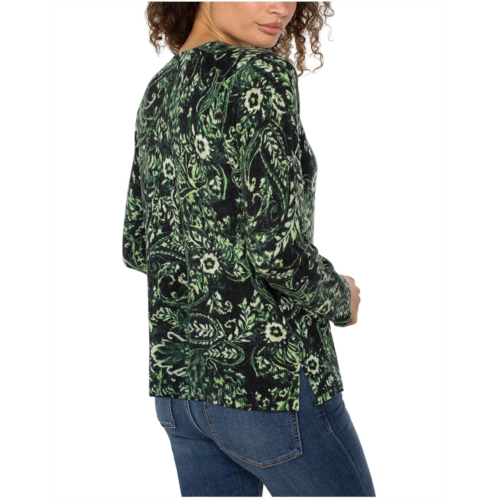 Bring on the style game wearing the cozy and comfy Liverpool Los Angeles Long Sleeve Printed Raglan Sweater W/ Side Slit. This sweater features a vibrant green paisley print that brings a pop of color to your everyday rotation. It's the perfect layer to pair with denim, trousers, or a tailored skirt-effortless, polished, and anything but basic.