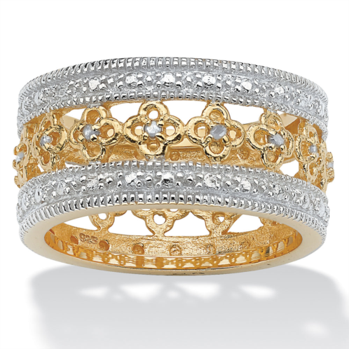 [US] PalmBeach Jewelry 1/7 tcw round diamond 18k gold-plated sterling silver flower motif eternity band