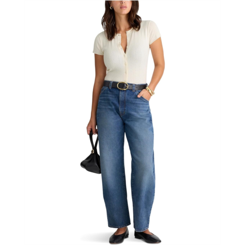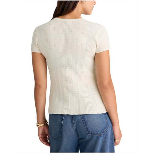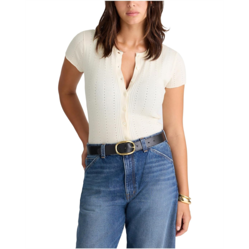 The Madewell Lilla Short Sleeve Cardigan is a trendy, lightweight ribbed pointelle-stitched cardigan that is perfect for layering all year round. With a flattering split crew neckline and short sleeves, this cardigan features a buttoned front closure for a versatile and stylish look.