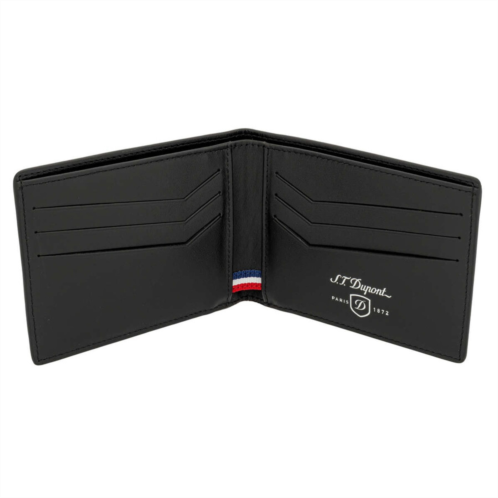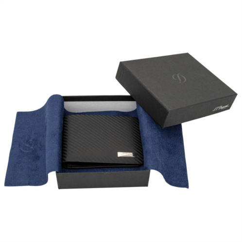 S.T. Dupont Wallets. Defi series. SKU: 170001. Color: Black. S.T. Dupont’s Defi Carbone billfold blends modern design with exceptional durability. Crafted from ultra-resistant carbon leather, it features six credit card slots, two slip pockets, and a banknote compartmentoffering sleek organization in a compact form. Finished with brushed palladium accents, royal blue lining, and a hand-stitched tricolour band, it reflects the brand's bold French heritage and technical precision. Dimensions: 5.71 x 1.61 x 5 inches.