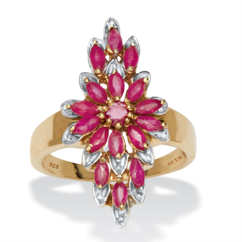 Elevate your wardrobe with this vintage-inspired, genuine red ruby cocktail ring. Featuring hand-cut round and marquise-cut stones, this beautifully designed ring is sure to captive and intrigue. You'll love its worldly appeal. 2.20 TCW set in 14k yellow gold-plated sterling silver. Sizes 6-10.