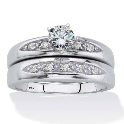 [US] PalmBeach Jewelry .64 cttw. round cubic zirconia platinum-plated silver 2 piece bridal ring set