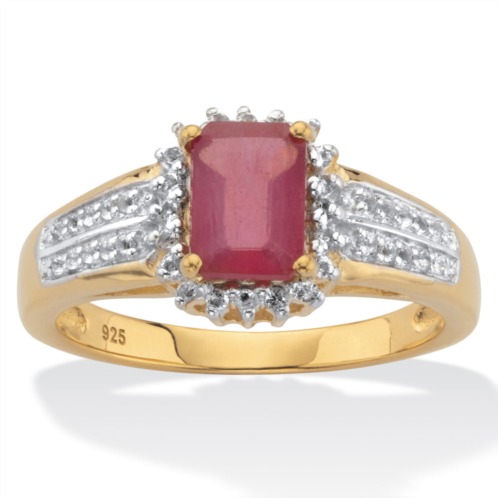[US] PalmBeach Jewelry 3.15 cttw. red ruby and white topaz two-tone gold-plated silver halo ring
