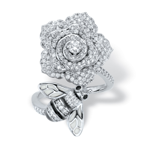 [US] PalmBeach Jewelry 1.27 cttw. round black and white cz platinum-plated flower and bee cocktail ring