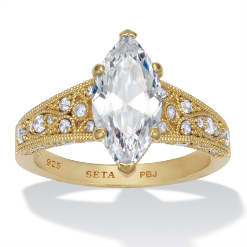 [US] PalmBeach Jewelry 3.23 tcw marquise cubic zirconia gold-plated sterling silver engagement ring