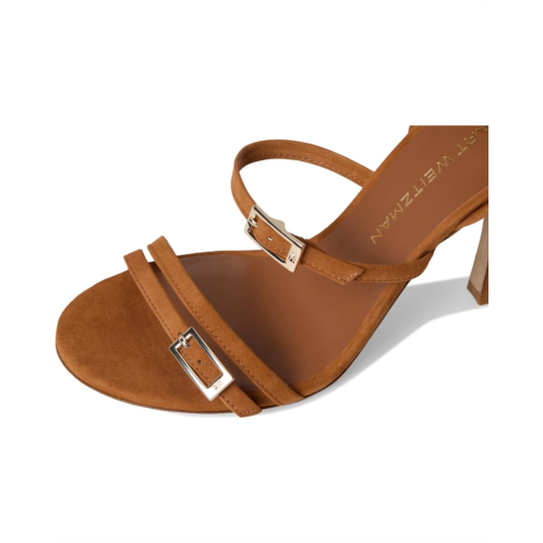 Unleash your inner goddess with the captivating Stuart Weitzman Georgie 100 heels. The chic buckle accented strappy leather upper is sure to turn heads, while the leather lining and insole provide ultimate comfort all day long. These stiletto heels feature an open toe design, making them the perfect statement shoe for any occasion.