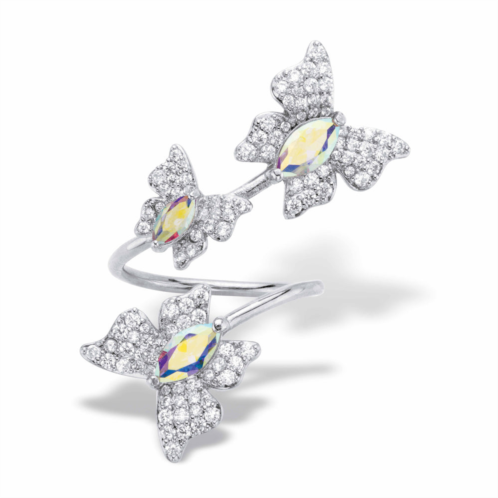 [US] PalmBeach Jewelry 2.31 cttw. aurora borealis cubic zirconia platinum-plated butterfly wrap ring