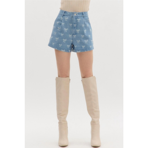 Not only cute but extremely comfortable. The jean shorts you will be reaching for all season long.Elevate your summer style, exuding a boho-chic flair in light denim. Feature a fashionable bow pattern and practical slant pockets, with a classic button closure. Made from Premium Cotton. Machine wash and tumble dry. Ideal for concerts or any stylish casual outing.