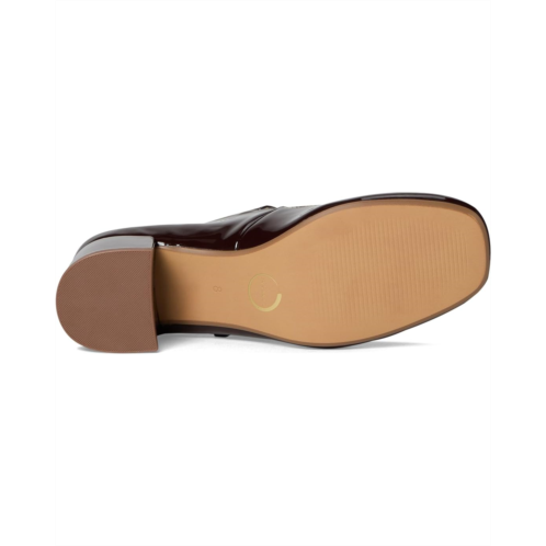 - The Journee Collection Okenna heels will have your feet feeling more comfortable than ever while still giving you all the style you've been looking for. The insole offers support, and the patent vegan leather and covered block heel make them super chic. A mary janekoread strap tops the design for a vintage look.