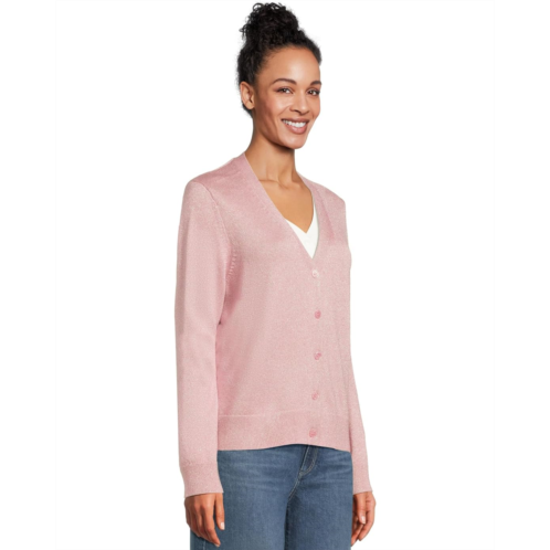 The Michael Stars Ruiz Cardigan is a stylish and cozy addition to your wardrobe. The cardigan features a full-button closure, long sleeves with ribbed cuffs, allover metallic details, and a straight ribbed hem.