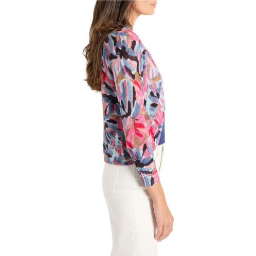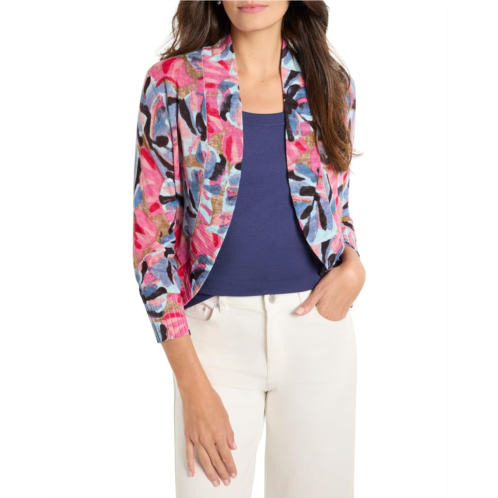 Oooh. Aaaaah. Knit from our lightweight linen viscose yarn, this colorful, celebratory printed NIC+ZOE Firework Foliage Bolero Cardigan takes our Bolero silhouette to the next level. Our take on the traditional shape has more coverage than the average bolero silhouette, straddling the line between cardigan and bolero, but the definition isn't as important as just how good it looks. Rib finishes along the open front, collar, and extra long cuffs add detail and texture to the dress-up or dress-down style: the perfect layer on top of both tanks and dresses, it's the perfect grand finale for any festive outfit.