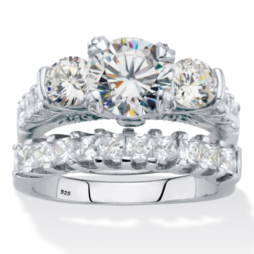 [US] PalmBeach Jewelry 4.69 tcw round and princess-cut cz platinum over silver 2 piece bridal ring set