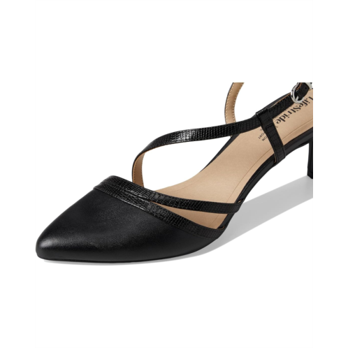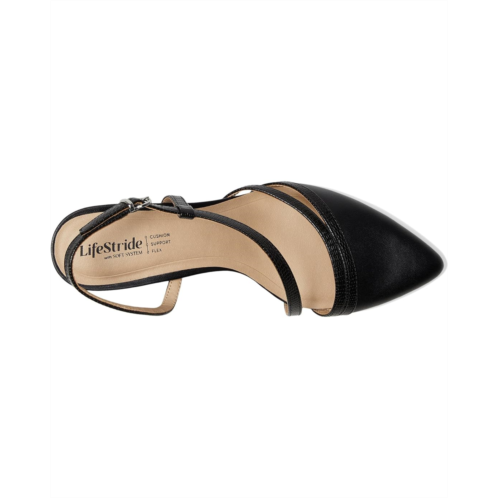 Look chic, feel comfortable in these strappy LifeStride Arlo pumps. Featuring a contemporary asymmetrical design, the footwear is crafted with faux leather upper and a softly pointed toe. An adjustable buckle on the slingback strap offers built-in stretch for the perfect fit. They incorporate trusted Soft System comfort technology to provide unmatched cushion, support, and flexibility.