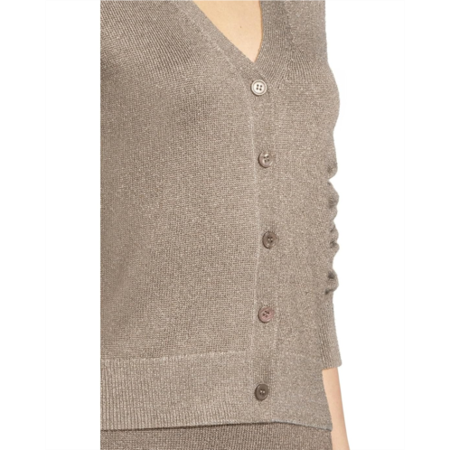 The Michael Stars Ruiz Cardigan is a stylish and cozy addition to your wardrobe. The cardigan features a full-button closure, long sleeves with ribbed cuffs, allover metallic details, and a straight ribbed hem.