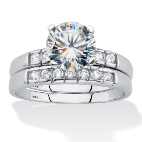 Embrace the seamless sparkle of this round brilliant-cut cubic zirconia 2-piece bridal set. Classic, timeless and refined, this is a design you will adore for a lifetime. 2.33 carats T.W. Platinum-plated sterling silver. Sizes 6-10.