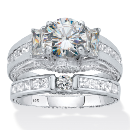 [US] PalmBeach Jewelry 3.80 cttw. round cut cz platinum over silver 2 piece bridal ring set
