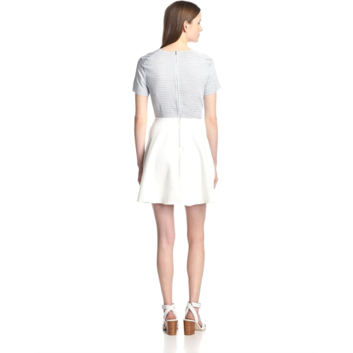 Keep yourself cozy in the cold days by wearing line and dot Rumi Short Sleeve Sweater. A striped pattern sweater is designed with short sleeves, crew neckline, and relaxed fit. A gathered front makes it even more appealing in look.