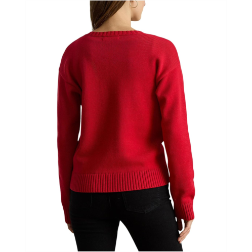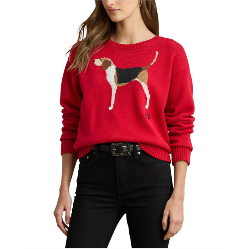 Knit with combed cotton for a soft hand, this crewneck sweater features an intarsia-knit foxhound and an embroidered script 'LRL' logo at the chest. A relaxed-fitting silhouette and dropped shoulders enhance its cozy feel.