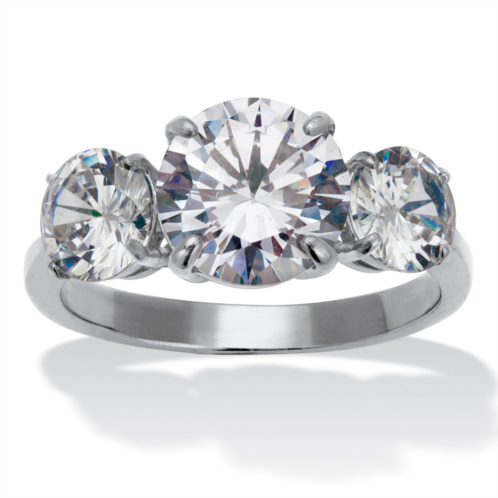 [US] PalmBeach Jewelry 4.96 tcw cubic zirconia stainless steel 3-stone bridal ring