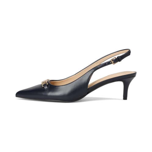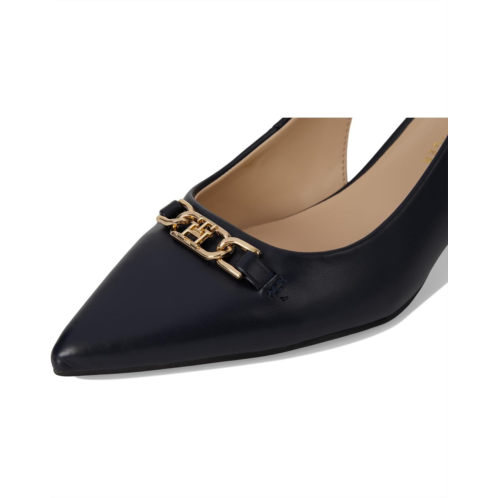 - The Tommy Hilfiger Tienna pumps with gleaming signature metallic logo hardware highlight their pointed toe shape. These heeled pumps are designed with a slingback strap with an adjustable buckle closure for a secure fit. They are made of a faux leather upper, foam footbed, and polyester lining.