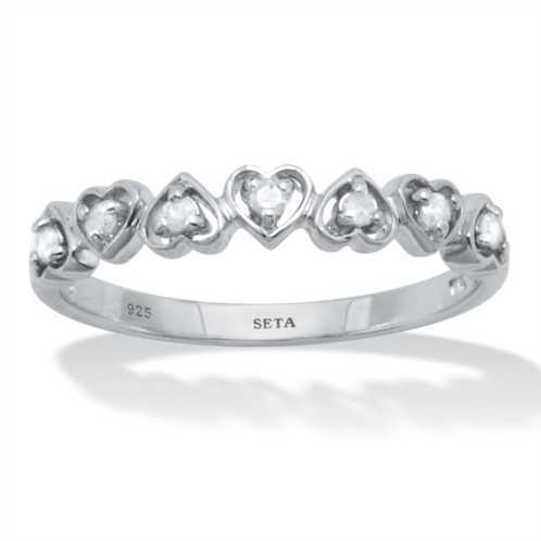 This ring features 7 sparkling diamonds totaling .11 carats, arranged in an elegant interchanging heart pattern on a luxurious platinum-over-sterling silver band. Perfect for expressing love and sophistication, it's an ideal accessory for any occasion. Sizes 6-10.