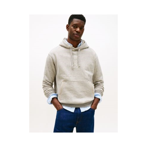 Tommy Hilfiger men's hoodie. We used mouline yarn (created by twisting differently shaded strands together) to add dimension and color variation to our hoodie for a heathered look. The flat drawstrings and tonal crest embroidery at the chest elevate the look.