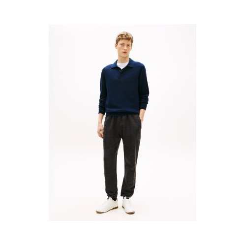 Tommy Hilfiger men's pant. We used mouline yarn (created by twisting differently shaded strands together) to add dimension and color variation to our sweatpants for a heathered look. The flat-front waistband and tonal crest embroidery at the thigh elevate the look.