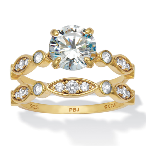[US] PalmBeach Jewelry 2.52 tcw round cubic zirconia 14k gold-plated sterling silver bridal ring set