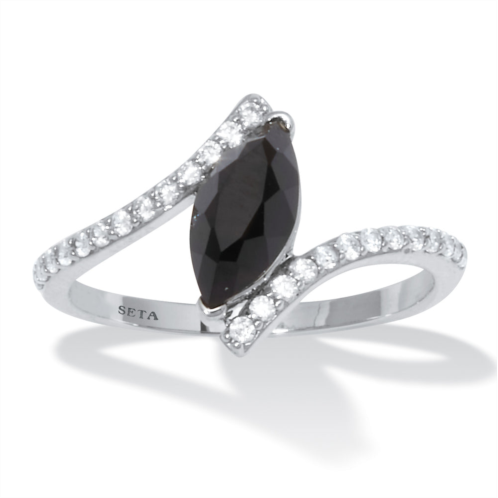 [US] PalmBeach Jewelry marquise genuine onyx and cubic zirconia silvertone ring