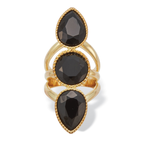 [US] PalmBeach Jewelry 3-stone goldtone onyx cocktail ring