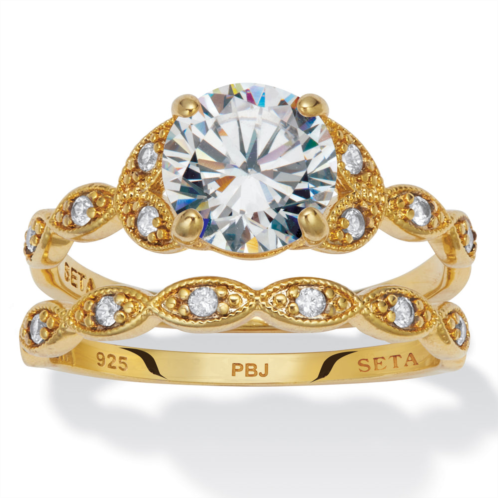 [US] PalmBeach Jewelry 2.21 tcw round cubic zirconia 14k gold-plated sterling silver bridal ring set