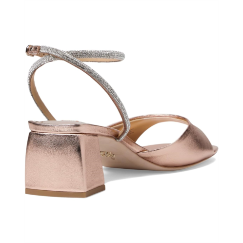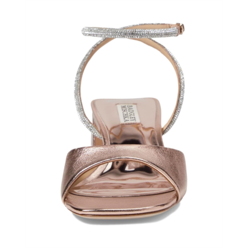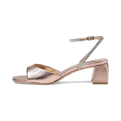 - Featuring rhinestone embellishment on the straps, make a glamorous entry by wearing the Badgley Mischka Infinity II sandals. Comfortable and cushioned, these block-heel sandals are perfect to wear for long hours. The ankle strap with a buckle closure offers a secure fit and support. Crafted from lustrous silk satin, these glamorous sandals provide all-day comfort and durability. Enhanced the overall charm of your outfit by wearing these heeled sandals.