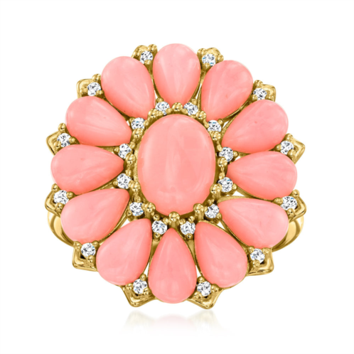 [US] Ross-Simons pink coral and white zircon floral ring in 18kt gold over sterling