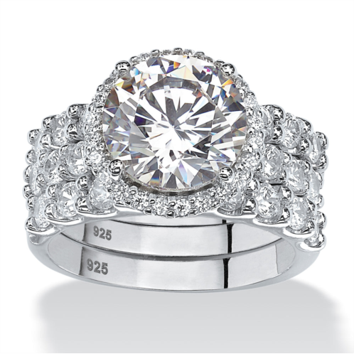 [US] PalmBeach Jewelry 5.78 tcw cubic zirconia 3-piece platinum-plated sterling silver halo bridal set