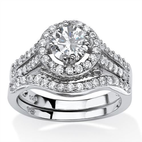 [US] Palm Beach Jewelry 1.67 tcw round cz two-piece halo bridal set in platinum-plated sterling silver