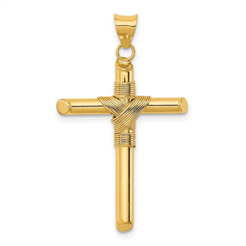 [US] Diamond2Deal 14k yellow gold polished center wrap tube cross pendant