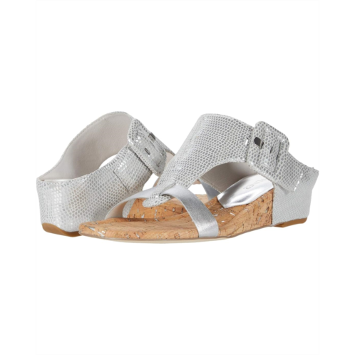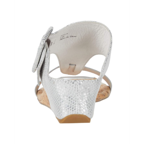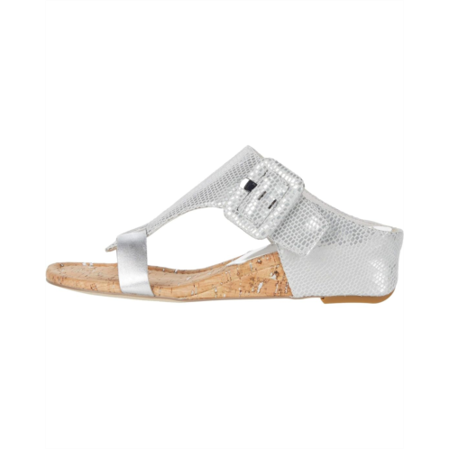 The Donald Pliner Ofelia sandal makes a chic statement with a T-strap silhouette, open toe, oversized buckle detail at the side, and wedge heel.