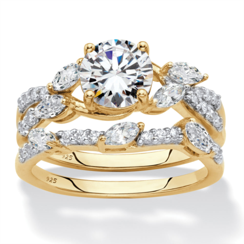 This stunning wedding ring set features a spectacular round cubic zirconia center stone amidst marquise-cut leaves and glimmering round accents in a crossover design that will make you swoon. 2.42 carats T.W. Crafted in shining 18k yellow gold-plated sterling silver. Sizes 6-10.