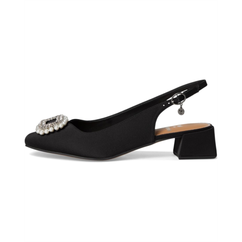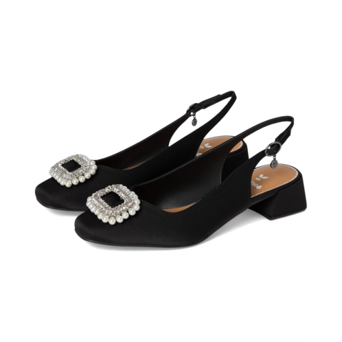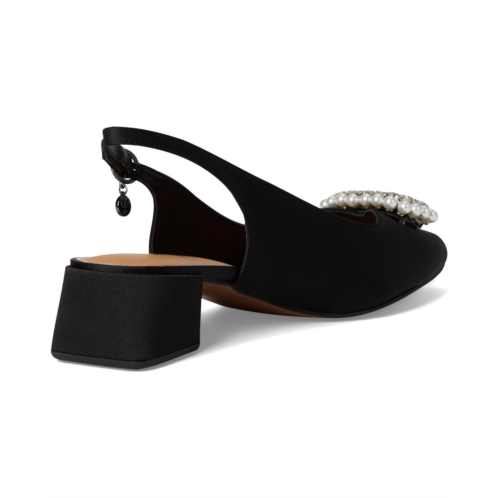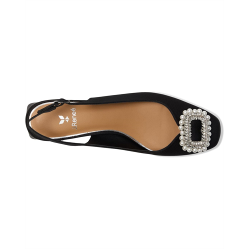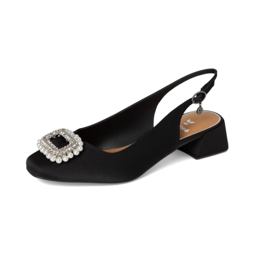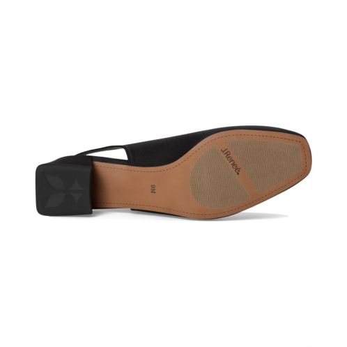 - Amp up your style game wearing the J. Renee Eudora Slingback Sandals. This year-round women's fabric square toe pump has a Memory Foam + Latex insole, synthetic lining, and a satin upper with cute crystal & pearl details. This style also features a buckle closure for adjustability and a solid block heel.