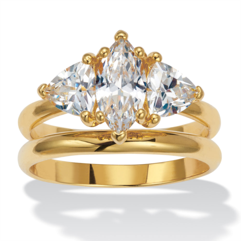 [US] PalmBeach Jewelry 2 tcw marquise cubic zirconia 14k yellow gold-plated bridal ring set