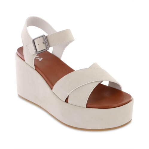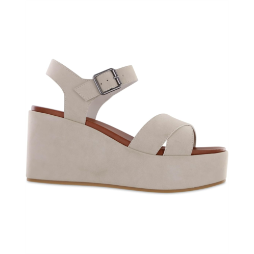 Redefine the standard of luxe style and comfort wearing MIA Renay Sandals. The rounded toe pair features faux suede upper construction with buckled ankle strap closure and platform wedge heels.