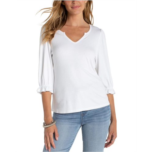 [US] Womens Liverpool Los Angeles Elbow Sleeve Notch Knit Tee