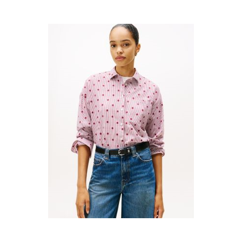 Tommy Hilfiger women's shirt. This relaxed, lightweight shirt is made from pure cotton poplin with a crisp finish. The stand-out polka-dot jacquard design allows the perfect opportunity to play with patterns and enliven your wardrobe.