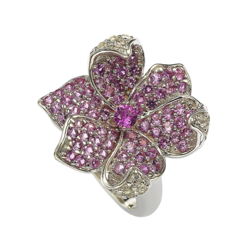 [US] SUZY LEVIAN pink sapphire and diamond accent in sterling silver flower petal ring