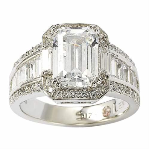[US] Suzy Levian sterling silver white emerald-cut cubic zirconia engagement ring
