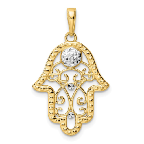 [US] Diamond2Deal 14k yellow gold white rhodium diamond-cut evil eye filigree hamsa pendant