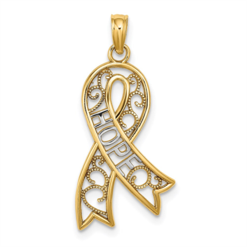 [US] Diamond2Deal 14k yellow gold rhodium filigree ribbon hope charm