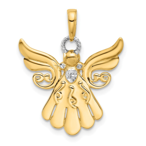 [US] Diamond2Deal 14k yellow gold with white rhodium diamond-cut angel pendant