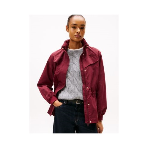 Tommy Hilfiger women's jacket. Our lightweight yacht jacket keeps the elements at bay without compromising on a flattering fit. Designed with a drawcord waist, a hidden hood at the collar, and a funnel neck, it seamlessly blends style and utility.